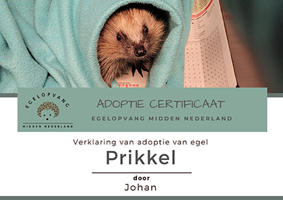Bij de persoonlijke digitale adoptie kiest u zelf de naam van uw ‘eigen’ egel. Natuurlijk staat op het adoptiecertificaat ook de door u gekozen naam van de adoptant. Het persoonlijke certificaat ontvangt u via de mail.