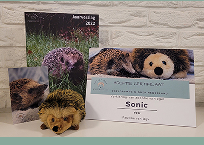 Per post ontvangt u een compleet cadeaupakket, inclusief egelknuffel, ons jaarverslag en een persoonlijke boodschap. Wij sturen het pakket naar elk gewenst adres binnen Nederland.